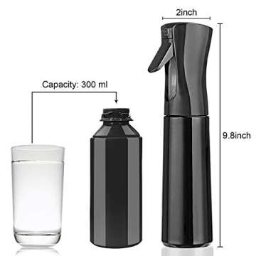 Cosywell Hair Spray Bottle Empty Plastic Trigger Spray Bottle Refillable Fine Mist Sprayer Bottle 2 Pack 10oz /300ml for Hair Styling, Cleaning, Garden Continuous Water Mister (1Black+White)
