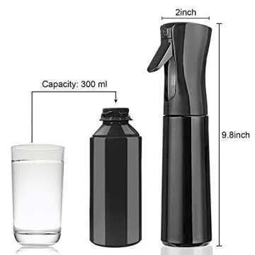 Show moreIntroducing the Cosywell Hair Spray Bottle, your ultimate companion designed for versatility and effectiveness! At just 10oz (300ml), this refillable fine mist sprayer is perfect for enhancing your daily routine, whether you're styling your hair, disinfecting surfaces, or watering your beloved plants. This sleek two-pack features both black and white designs, allowing you to choose the style that best suits your personal aesthetic. Need a consistent, continuous spray for thorough cleaning or to effortlessly refresh your curls? The innovative pump design provides an even, fine mist that covers larger areas without saturating surfaces, helping you save time, effort, and liquid!