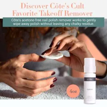 Show moreDiscover the revolutionary COTE - TAKEOFF Wild Sea Rose Acetone Free Polish Remover, a game-changer in the world of nail care. Designed with both effectiveness and safety in mind, this premium nail polish remover transforms your manicure routine into a luxurious experience without harming your nails. Crafted from natural ingredients, this remover gently wipes away polish, leaving you with a clean nail bed, free from any chalky residue. Infused with a delicate Wild Sea Rose fragrance, it not only works wonders but also envelops you in a soothing aroma, enhancing your self-care ritual. Plus, the stylish bottle features a salon-like dispensing lid, preventing spills and mess, while locking securely for added convenience. Experience the graceful fusion of performance and safety that COTE offers, perfect for those who prioritize cleaner beauty solutions.