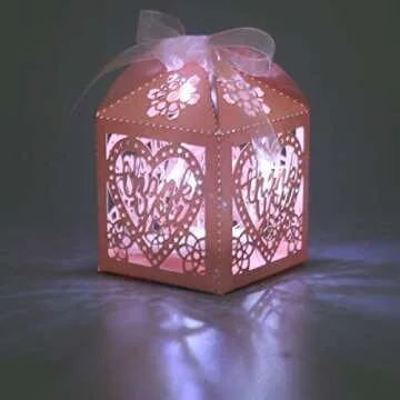 COTOPHER Laser Cut Boxes 100pcs Thank You Gift Boxes Wedding Party Favor Boxes Lace Candy Boxes for Wedding Bridal Shower Baby Shower Birthday Party Decorations with Ribbons (2x2x2.75inch, pink, 100)