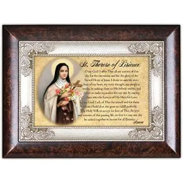 Cottage Garden St. Therese of Lisieux Dark Wood Finish Jewelry Music Box Plays Tune Ave Maria