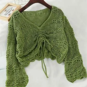Cottagecore Blouse Crochet Top Cottagecore Clothing Grunge Fairy Clothes Aesthetic Fairycore Clothing (Green,One Size)