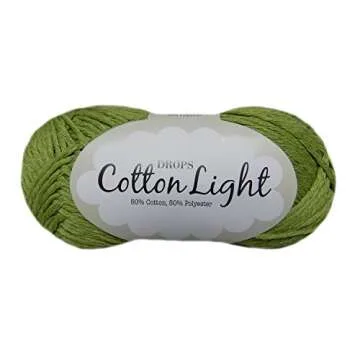Cotton Blend Yarn for Knitting and Crocheting, 3 or Light Worsted, DK Weight, Drops Cotton Light, 1.8 oz 115 Yards per Ball (11 Green)