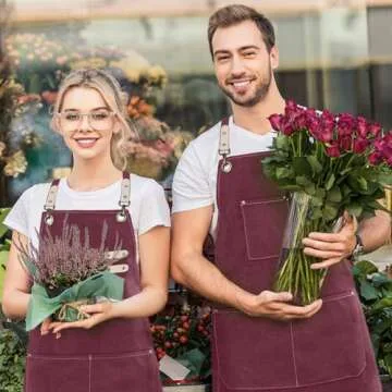 Cotton Canvas Cross Back Apron for Gardening Garden Chef Bartender Work Women Men 3 Pockets Waterproof Adjustable M-XXL Purple