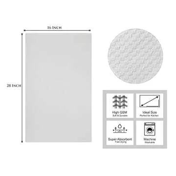 Show more Introducing the COTTON CRAFT Amazing Kitchen Towels – an essential addition to any kitchen that brilliantly combines style and functionality. This exceptional set includes twenty-four (24) premium cotton waffle weave kitchen towels, each generously sized at 16 inches by 28 inches. Crafted from 100% pure cotton, these towels boast a substantial 420 GSM (grams per square meter) for superior absorbency and durability, making them your perfect kitchen ally. The elegant, all-white design not only enhances the aesthetic appeal of your culinary space but also reflects a professional-grade quality akin to that found in gourmet kitchens worldwide. Enjoy the balance of beauty and utility with every use, from drying dishes to tackling spills efficiently.
