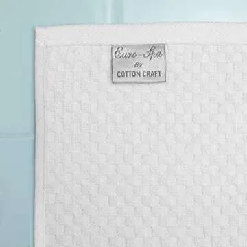 Show moreExperience the ultimate in comfort and luxury with our premium COTTON CRAFT Euro Spa Luxury Waffle Weave Bath Towels. This exquisite set includes four generously sized towels measuring 30 inches by 56 inches, crafted from 100% combed cotton for an incredibly soft touch. Inspired by the finest European resorts, these towels are designed to transform your bathroom into a serene spa-like retreat, bringing a touch of elegance and relaxation to your daily routine.