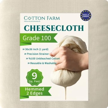 Grade 100 is unparalleled; Cotton Farm proudly leads with a design tailored exclusively for culinary experts. Its fine mesh texture, boasting 46×54 threads per inch, guarantees that no unwanted particles can escape during the straining process. This makes it an indispensable tool for straining a diverse variety of liquids and foods, including yogurt, melted butter, sauces, broths, and even homemade nut milk. Every kitchen deserves a high-quality cheesecloth that enhances flavor and ensures delicious results in culinary endeavors.