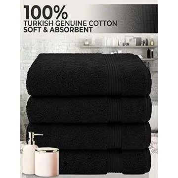 Cotton Paradise Bath Towels for Bathroom, 100% Cotton 4 Piece Turkish Bath Towel Set, Soft Plush Bath Towels Clearance Bathroom Set, Black Bath Towels