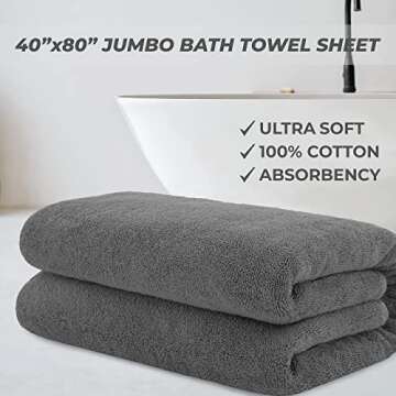 Show more Experience a touch of luxury every time you step out of the bath or shower with our exquisite oversized bath sheet. Crafted from 100% premium ringspun cotton, this 40x80 inches bath towel offers an unparalleled combination of softness and absorbency. Measuring a substantial 600 grams per square meter (GSM), it provides a plush and enveloping feel, perfect for the whole family. The extra-large size ensures that even the tallest or most luxurious bath experiences are easily accommodated. With a range of vivid color options available, you can match your bathroom decor while elevating your bathing routine to hotel-spa quality.