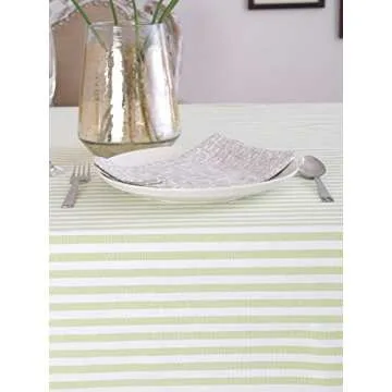 Cotton Rectangular Table Cloth (60 x 120 Inches), Green & White Stripe - Perfect For Spring, Summer, Holidays - Christmas And For Everyday Use