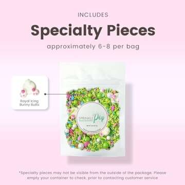 Show moreIntroducing the Cottontail Sprinkle Mix by Sprinkle Pop, a delightful blend designed specifically for your Easter celebrations! Made in the USA, this sprinkles mix features a vibrant combination of lime green, white, and pink pastel colors, guaranteed to add a burst of joy to any dessert. Each 2oz bag is thoughtfully crafted with not only traditional sprinkles but also includes cute white bunny royal icings that will bring a charming character to your cakes, cookies, cupcakes, and even ice cream. With a sweet vanilla finish and light crunch, each sprinkle is as tasty as it is visually appealing, elevating your treats beyond just decoration.