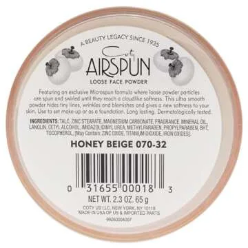 Show moreUnlock the secret to a flawless complexion with the Coty Airspun Loose Face Powder in the delightful Honey Beige shade. This 2.3-ounce wonder is perfect for setting your makeup, ensuring a long-lasting finish that feels as light as air. Its unique formula creates a soft-focus effect, allowing your skin to look naturally radiant while minimizing imperfections. The versatility of this powder is unmatched, making it ideal for both setting your makeup and providing a smooth foundation base. Embrace cloud-like softness with every application, and revel in your effortlessly beautiful look all day long!