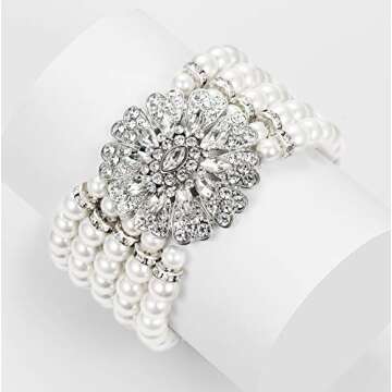 Coucoland 1920s Gatsby Pearl Bracelet Flapper Imitation Pearl Bracelet (Silver)