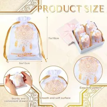 Coume 30 Pcs Eid Ramadan Mubarak Satin Gift Bags with Drawstring 5 x 7 Inch Silk Eid Party Favor Jewelry Pouches for Ramadan Supplies Candy Bags Muslim Party Decoration