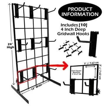 Counter Top Gridwall Display Unit, 24" x 12" Tabletop Grid with [10] 4" D Grid Hooks, Black, 1 Unit