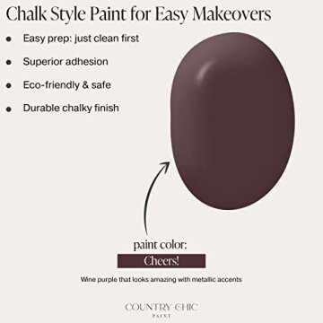 Transform your home projects with the Country Chic Paint - Chalk Style All-in-One Paint, meticulously designed for those who value quality and ease. Whether you want to breathe new life into your furniture, kitchen cabinets, or décor items, our Cheers! dark purple shade adds a vibrant touch. This pint-sized (16 oz) paint is more than just a color; it's a fusion of primer and top coat, enabling you to effortlessly achieve a stunning finish on various surfaces, including wood, laminate, glass,...
