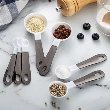When comparing the Country Kitchen Measuring Cups and Spoons Set to competitors, you will find that many other brands offer measuring tools lacking in both quality and design aesthetics. Unlike cheaper plastic sets that may warp over time, the durable plastic and stylish gunmetal finish of this set not only enhance its longevity but also its visual appeal. Many alternatives might not provide dual metric and US measurements, which can be vital for diverse cooking recipes. This combination of durability, style, and precision certainly places Country Kitchen ahead of its rivals in the measuring set market.