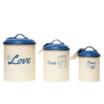 Country Living Pet Treat Storage Canisters Set of 3 - Airtight Lids for Freshness, Decorative Kitchen/Dog Room Containers for Snacks & Treat (French Blue)