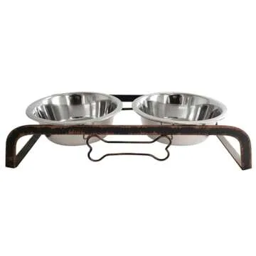 Country Living Rustic Dog Bone Design Elevated Feeder with 2 Stainless Steel Bowls (2 Quarts Each) – Stylish & Durable Dishwasher-Safe Pet Feeding Station, Ideal for Extra Large Dogs