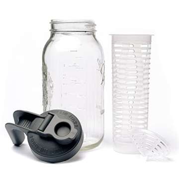 Show moreIntroducing the County Line Kitchen Glass Mason Jar Pitcher with Lid & Infuser, the perfect embodiment of style and functionality. This 64 oz pitcher combines heavy-duty glass construction with a thoughtful design ideal for any kitchen. The jar is not only a stunning centerpiece but also a versatile infuser pitcher, allowing you to create everything from refreshing infused waters to delightful iced teas and homemade sangrias. Made from BPA-free and food-grade materials, this pitcher ensures your beverages stay safe and delicious without leaching harmful chemicals. With its unique wide mouth design, pouring and cleaning has never been easier!