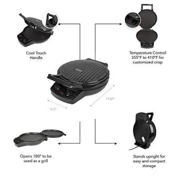 Show more Introducing the ultimate kitchen companion - a versatile cooking appliance designed to revolutionize the way you prepare meals! This incredible machine not only bakes 12-inch pizzas with a mouthwatering, crispy crust but also excels at making quesadillas, nachos, and various other dishes. With customizable temperature controls ranging from 355-410°F, you can tailor your cooking experience to perfection. Imagine enjoying a perfectly grilled mini frittata for breakfast or a delectable giant cookie for a midnight snack!