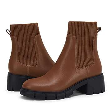 Coutgo Women’s Chelsea Platform Ankle Boots Elastic Slip On Chunky Block Heel Lug Sole Booties