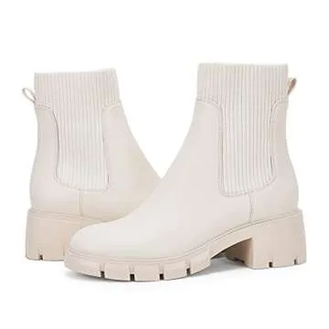 Coutgo Women’s Chelsea Platform Ankle Boots Elastic Slip On Chunky Block Heel Lug Sole Booties