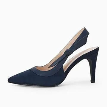 Show moreCoutgo Women's Pointed Toe High Heels Slingback Bowknot Formal Pumps are the epitome of sophistication and style. With a striking heel height of approximately 3.2 inches, these slingback kitten heels are designed for those who value grace and elegance in their footwear. Crafted from luxurious synthetic suede, these pumps stand out with their chic pointed toe and unique bowknot strap that beautifully secures around the ankle, making them a must-have for every fashion-conscious woman.