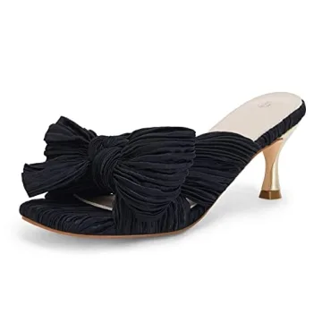 Show moreIntroducing the Coutgo Womens Bow Heeled Sandals, the perfect blend of elegance and comfort for the contemporary woman. Crafted with precision, these high heel sandals feature a chic pleated fabric bow that adds a fashionable flair to any outfit. The gentle 5.5cm kitten heel provides a subtle lift, offering a flattering silhouette without compromising on comfort. Designed for all-day wear, the ventilated lining keeps your feet cool and fresh, allowing you to step out with confidence whether you're heading to a wedding, cocktail party, or simply enjoying a night out.
