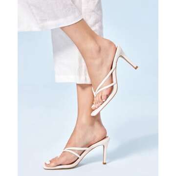Coutgo Womens Heeled Sandals Strappy Square Toe Flip Flops Fashion Thong Slip on Stiletto Sandals, White, Size 9