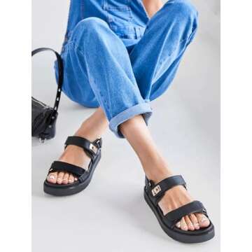 These summer sandals are not just practical but also fashion-forward. The gold metal decor adorning the front strap adds a chic touch that truly makes these flatform sandals stand out. Taking cues from the trends of 2024, the Coutgo Women's Platform Sandals encapsulate an effortless blend of elegance and everyday utility.