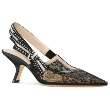 Coutgo Womens Slingback Kitten Heels Closed Pointed Toe Bowknot Knitted Slip On Work Pumps Dress Shoes, Mesh Black, Size 6.5