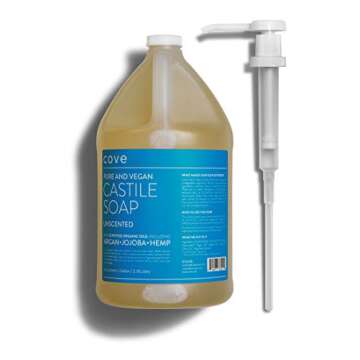Cove Castile Soap Unscented - 1 Gallon With Pump - Organic Argan, Jojoba, & Hemp Oils
