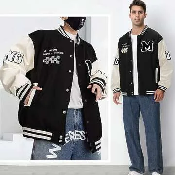 Show moreStep up your style game with the Covisoty Mens Varsity Jacket, a perfect blend of classic design and modern flair. This fashionable baseball bomber jacket features a trendy color-block design that ensures you stand out in any crowd. Whether you’re heading out for a casual outing or looking to turn heads at a gathering, this jacket's unique appeal makes it the ultimate choice for any occasion. Lightweight yet durable, it is ideal for layering, whether in the Spring, Fall, or Winter, making it the go-to option for indoor and outdoor activities alike.