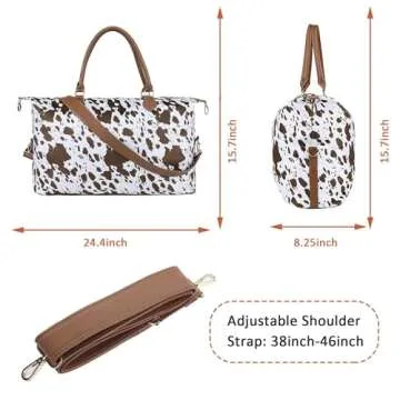 Cow Print Weekender Bag Cow Print Duffle Bag with Shouler Strap Cow Print Overnight Bags for Women Western Weekender Bag for Hospital Maternity