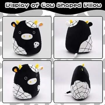 Show more Introducing the ultimate cozy companion for all ages, the Halloween Cow Plush Toy! This delightful plush is crafted from super soft short plush fabric and filled with high-quality PP cotton padding, making it the perfect cuddle buddy. Its unique design is enhanced by adorable features like round, big eyes and a plump chubby body, capturing the essence of cuteness. What truly sets this cow apart is its Halloween-inspired elements, featuring whimsical spider webs and skulls that make it an ideal decorative piece for spooky season.