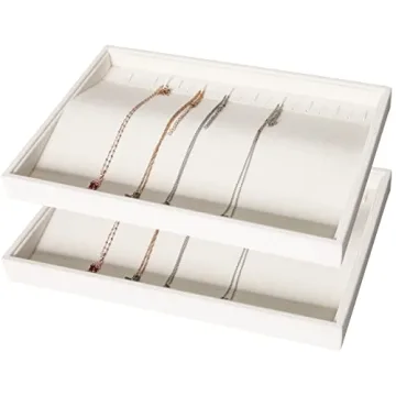 Designed with versatility in mind, this jewelry organizer set includes customizable dividers, enabling you to create the perfect compartment size for your unique collection. From rings sorted by size to necklaces organized by color, you'll quickly find exactly what you're looking for at a glance. The elegant design of these trays complements any room decor, ensuring that your jewelry remains securely stored yet beautifully displayed.