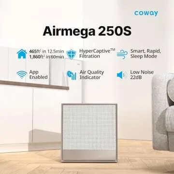 Show moreIntroducing the COWAY Air Purifiers for Home - 250S, your ultimate solution for ensuring clean, breathable air in large spaces. Designed to efficiently purify areas up to 1,860 square feet, this air purifier utilizes advanced technology to significantly enhance the air quality in your home.