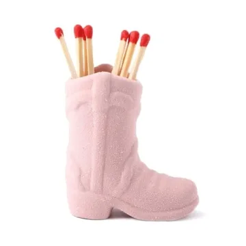 Cowboy Boot Match Holder, Ceramic Match Box for All Matches, Match Jar for Bathroom, Kitchen, Cute Matchstick Holder for Home Decor (Matches NOT Included) (Pink)