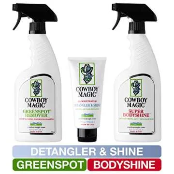 The Cowboy Magic Detangler & Shine is not just about looks; it's about practicality too. Greenspot Remover acts like a shower in a bottle, effectively breaking down organic materials to remove dirt, dust, and debris effortlessly. This makes it an essential choice for pet owners who want a quick solution to keeping their pets clean without the lengthy bath time.