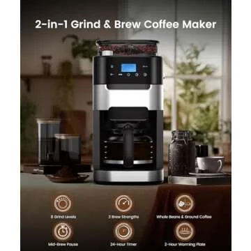 COWSAR 10-Cup Drip Coffee Maker with Built-In Grinder, 24-Hour Programmable, Adjustable Grind & Brew, Keep Warm Plate, 50.7oz Water Reservoir, Ideal for Home & Office - Black