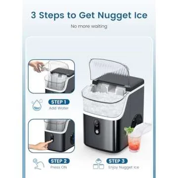 Show more Introducing the COWSAR Nugget Ice Maker - your ultimate solution to chilled beverages and delightful, chewable nugget ice! Perfect for any occasion, this innovative countertop appliance is designed to make your life easier and your drinks tastier. With a remarkable 7-minute ice production time, you can enjoy the first batch of soft, chewable ice in no time. Equipped with an upgraded compressor, the COWSAR Nugget Ice Maker produces up to 35 lbs of ice per 24 hours, ensuring you'll never run out during a party or gathering.