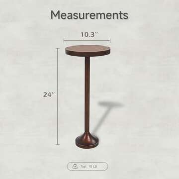 COZAYH Small Pedestal End Table, Metal Base Side Table, Drinking Table with Scratching Distressed Finish, Light Espresso