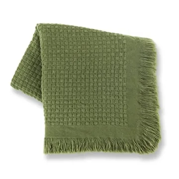 Currently, the throw blanket is primarily offered in a light olive green color that complements various decor styles.