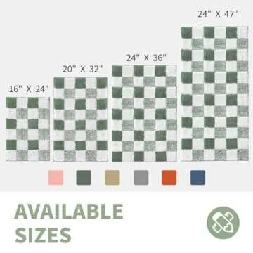 Show more Introduce a touch of warmth and elegance into your home with the CozeCube Checkered Bath Mat. Designed with a unique checkered pattern, this bath mat features a delightful combination of creamy white and sage green hues. Perfectly capturing the essence of classic American design, it adds a cheerful vibe to your bathroom while seamlessly integrating with various interior styles. Beyond its aesthetic appeal, the CozeCube bath mat is tailored for functionality—measuring 24" x 16", it fits beautifully in front of your shower, sink, or bathtub, ensuring a cozy spot for your feet when you step out of the water.
