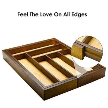 Cozee Bay Bamboo drawer organizer, utensil holder, silverware organizer, and adjustable cutlery tray with drawer dividers, for kitchen, office desk, and bathroom storage (Vintage Brown)
