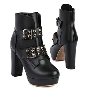 Cozivwaiy Women High Heel Ankle Boots Round Toe Short Boots Platform Plus size (US 1-12.5)