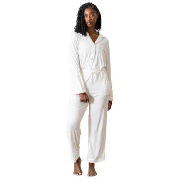 Cozy Earth 100% Viscose From Bamboo Long Sleeve Pajama Set For Women - Button-Up Sleepwear Ivory