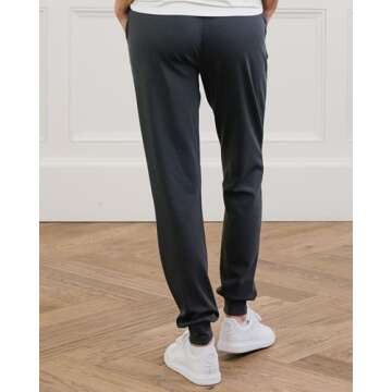 The joggers are made from ultra-soft Viscose from Bamboo fibers, providing a plush feel and moisture-wicking properties that enhance comfort.