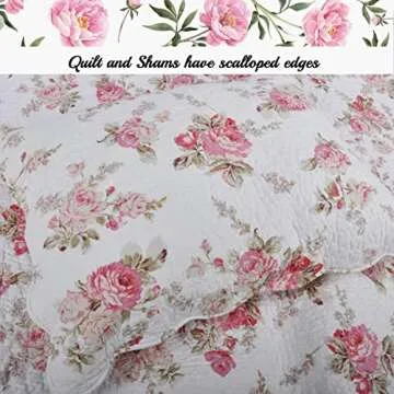 Cozy Line Romantic Pink Peony Floral 100% Cotton Reversible Quilt Set for Queen Bedding (3 Piece)